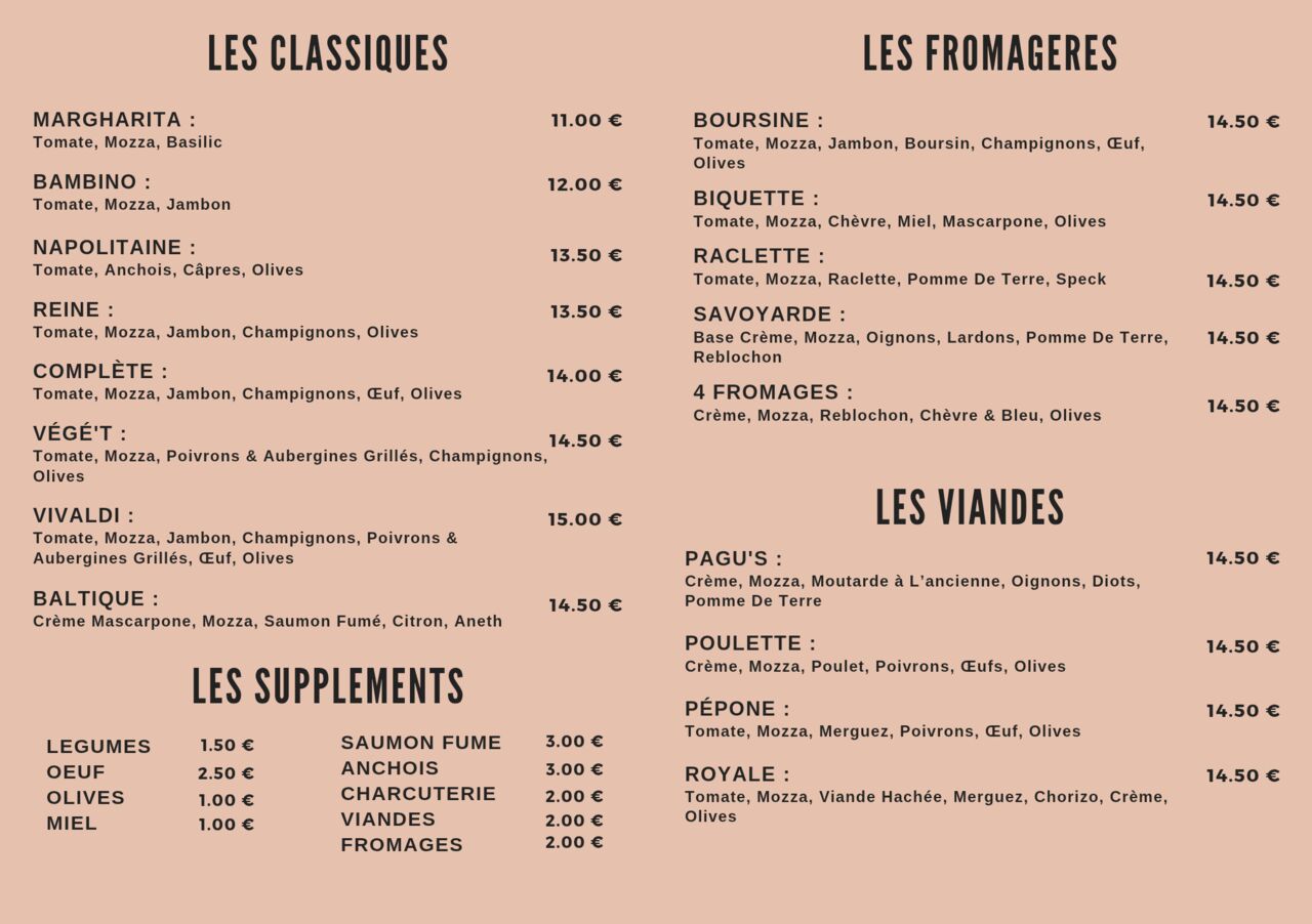 Mode de règlement par CB, Amex, paiement sans contact, espèces. Pizza à emporter